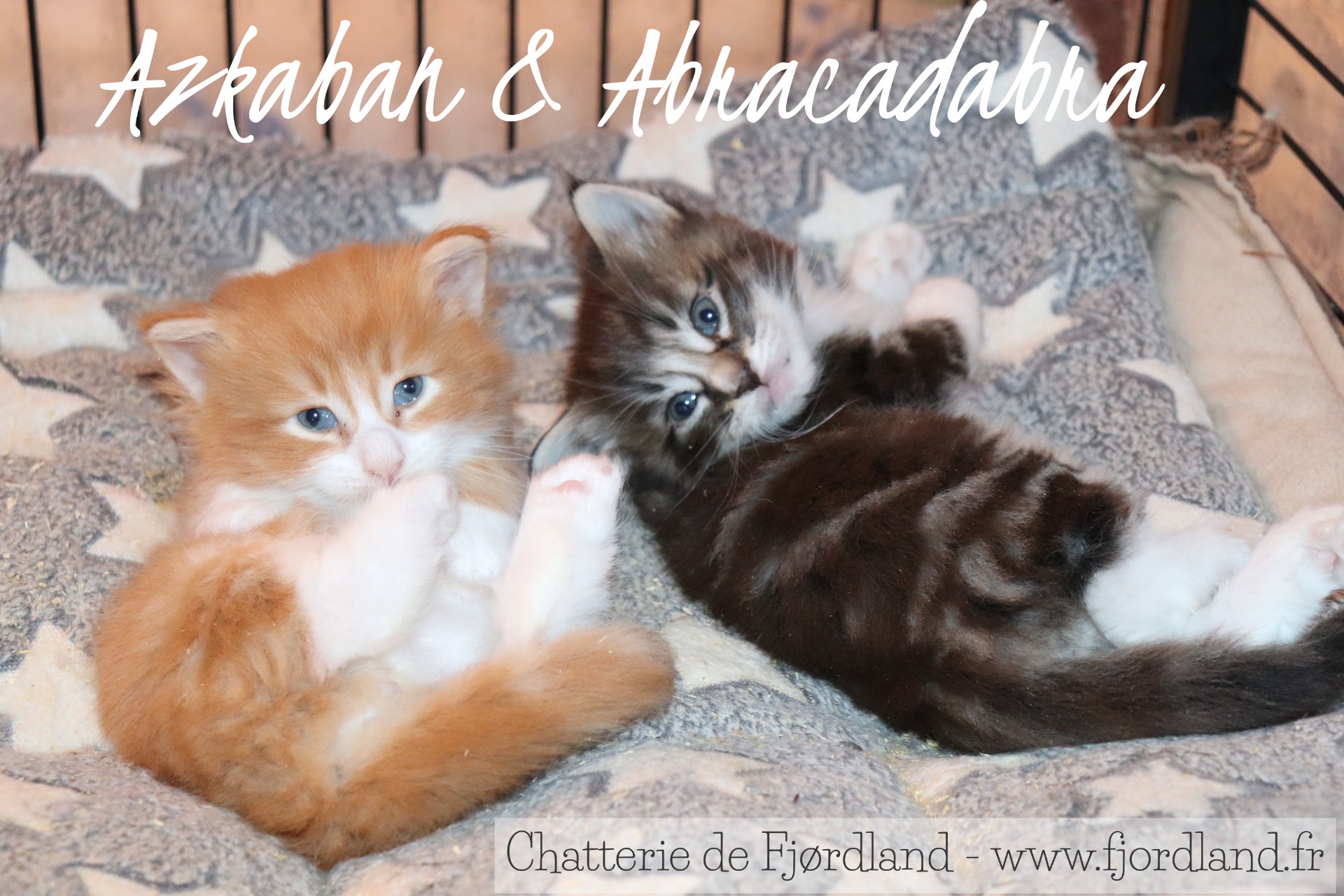 Voici 2 petites boules de poils, Azkaban & Abracadabra, qui s'en donnent à cœur joie sous l'œil attentionnée de maman Ushuaïa. Difficile de ne pas craquer devant leurs galipettes et ronrons !